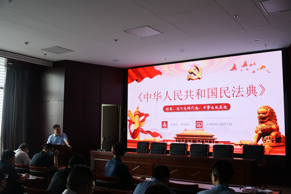 7月31日下午,根據(jù)集團(tuán)公司2020年度普法培訓(xùn)計(jì)劃要求,為大力宣傳學(xué)習(xí)新通過(guò)的《中華人民共和國(guó)民法典》,集團(tuán)公司在17樓會(huì)議室組織開(kāi)展了《宣傳貫徹<中華人民共和國(guó)民法典>法治宣講報(bào)告會(huì)》,本次民法典宣講由河南辰中律師事務(wù)所申律師主講。集團(tuán)公司70多名員工參加了本次培訓(xùn)。
